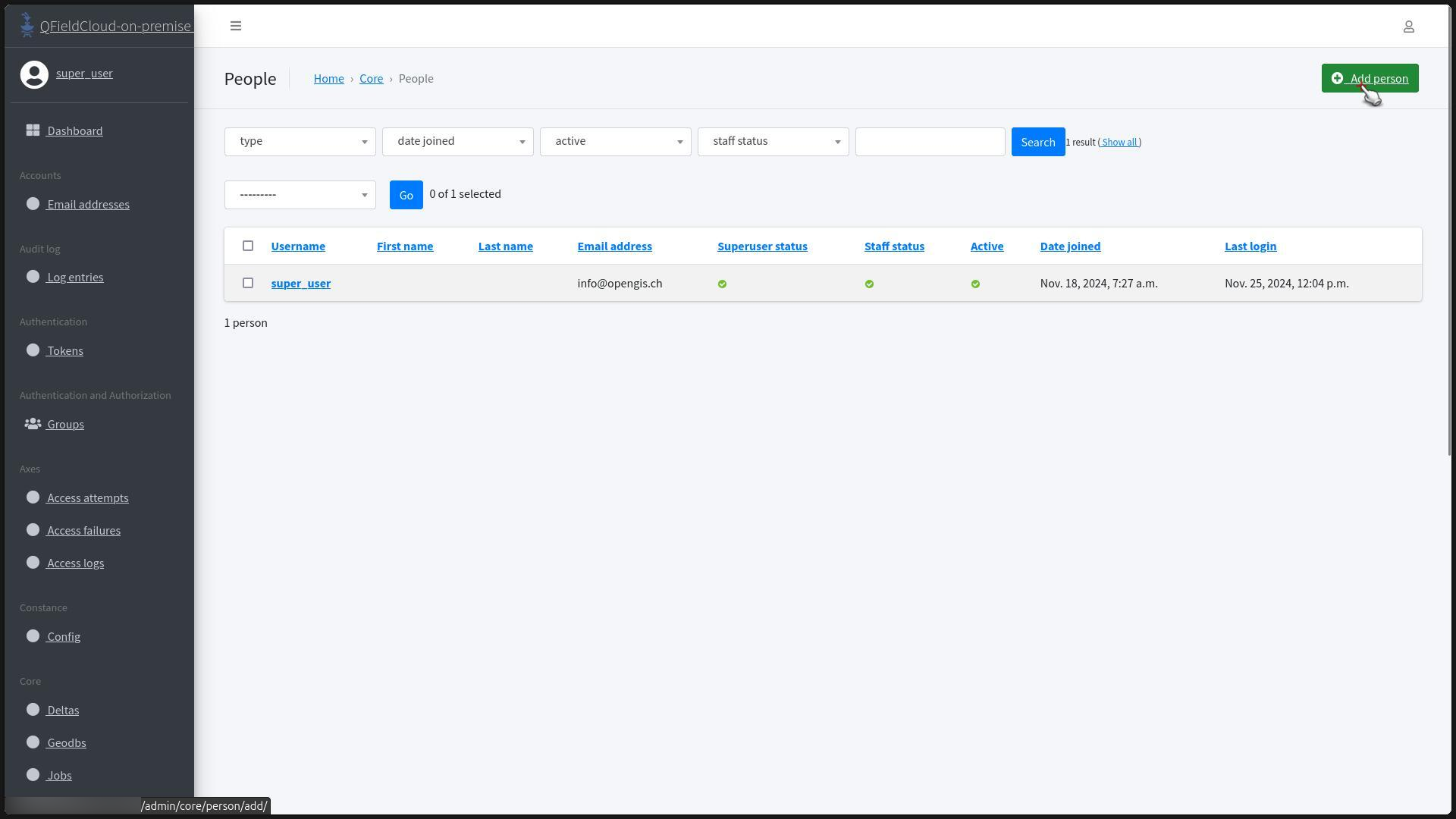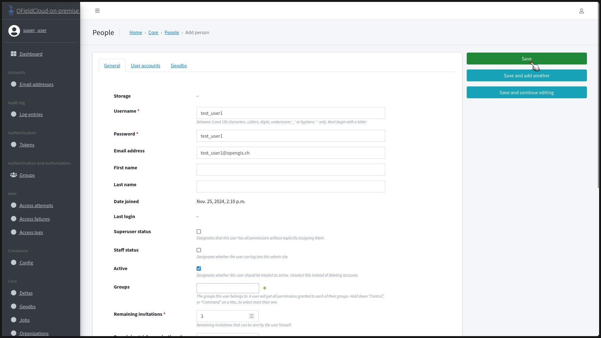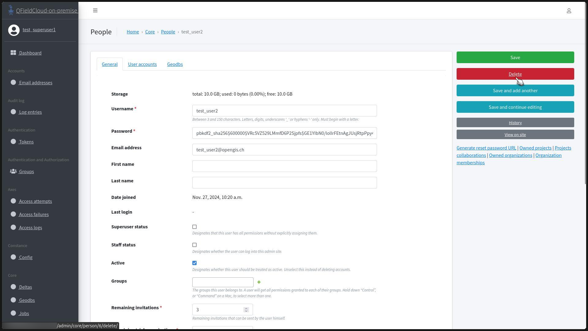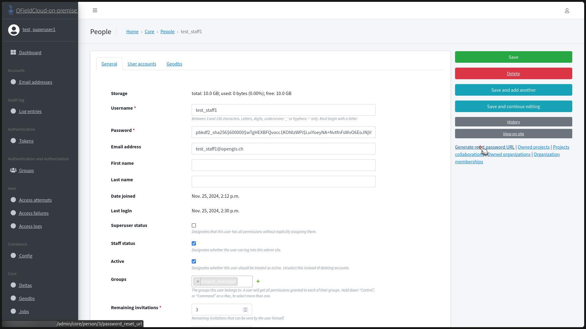 The "Password" field will show the hashed version of any password. If a system administrator wants to change it, just replace the contents with the new password, QFieldCloud will handle it automatically.