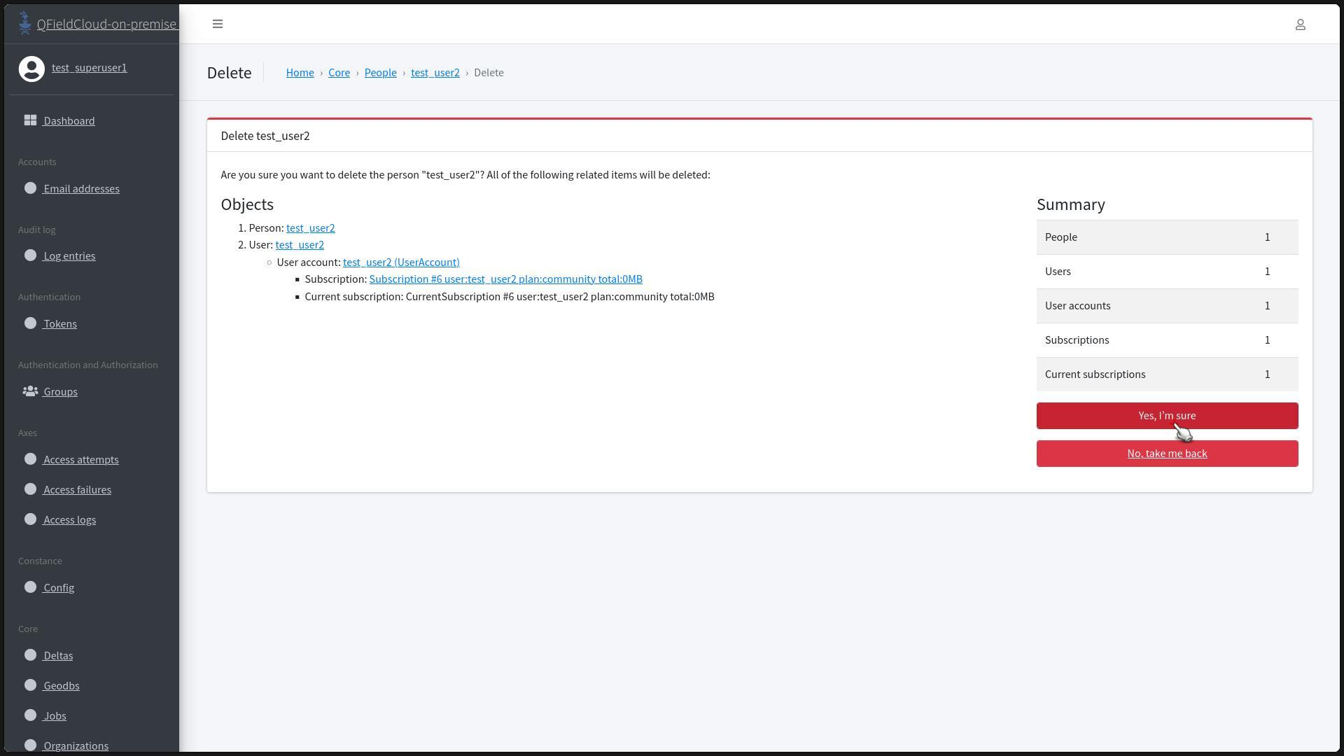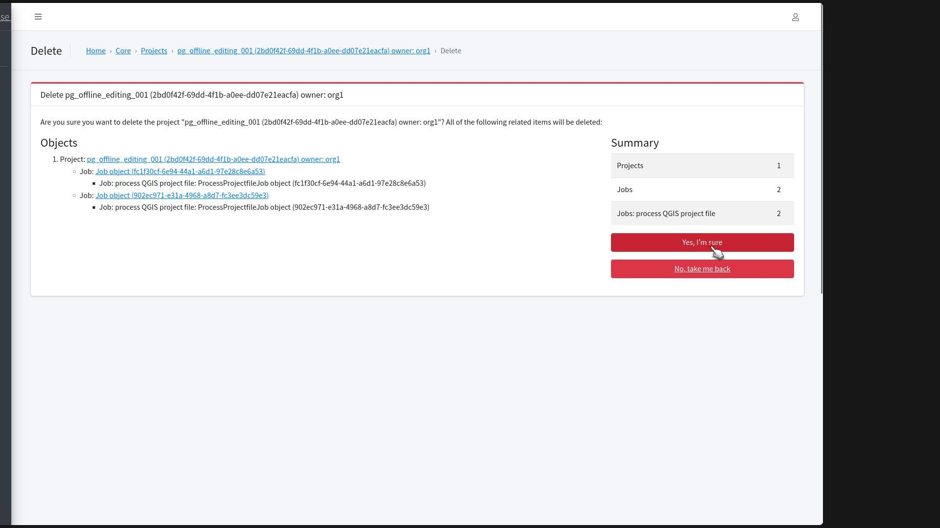 The screen will show you all the related objects that will be deleted. Once you are sure that you wish to complete the deletion click "Yes, I'm sure".