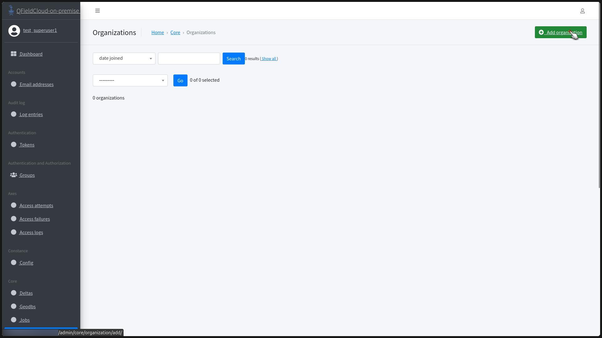 Click "Save" to create the organization, and a success message should be shown at the top of the browser.