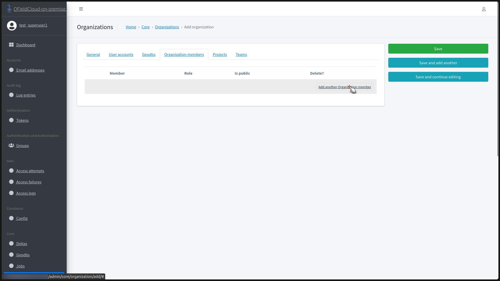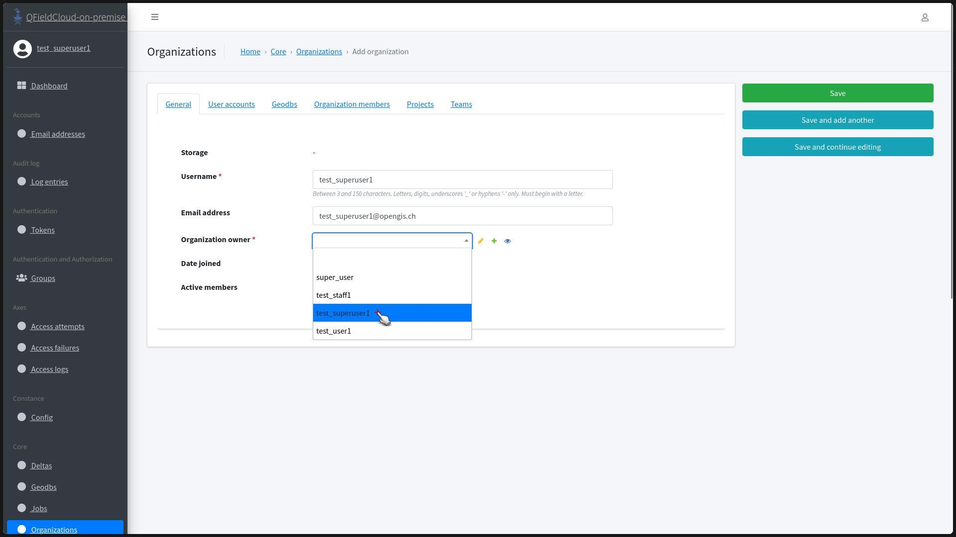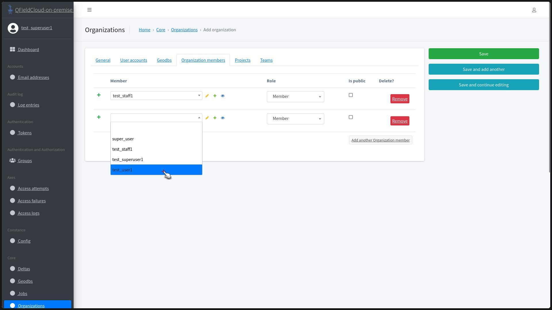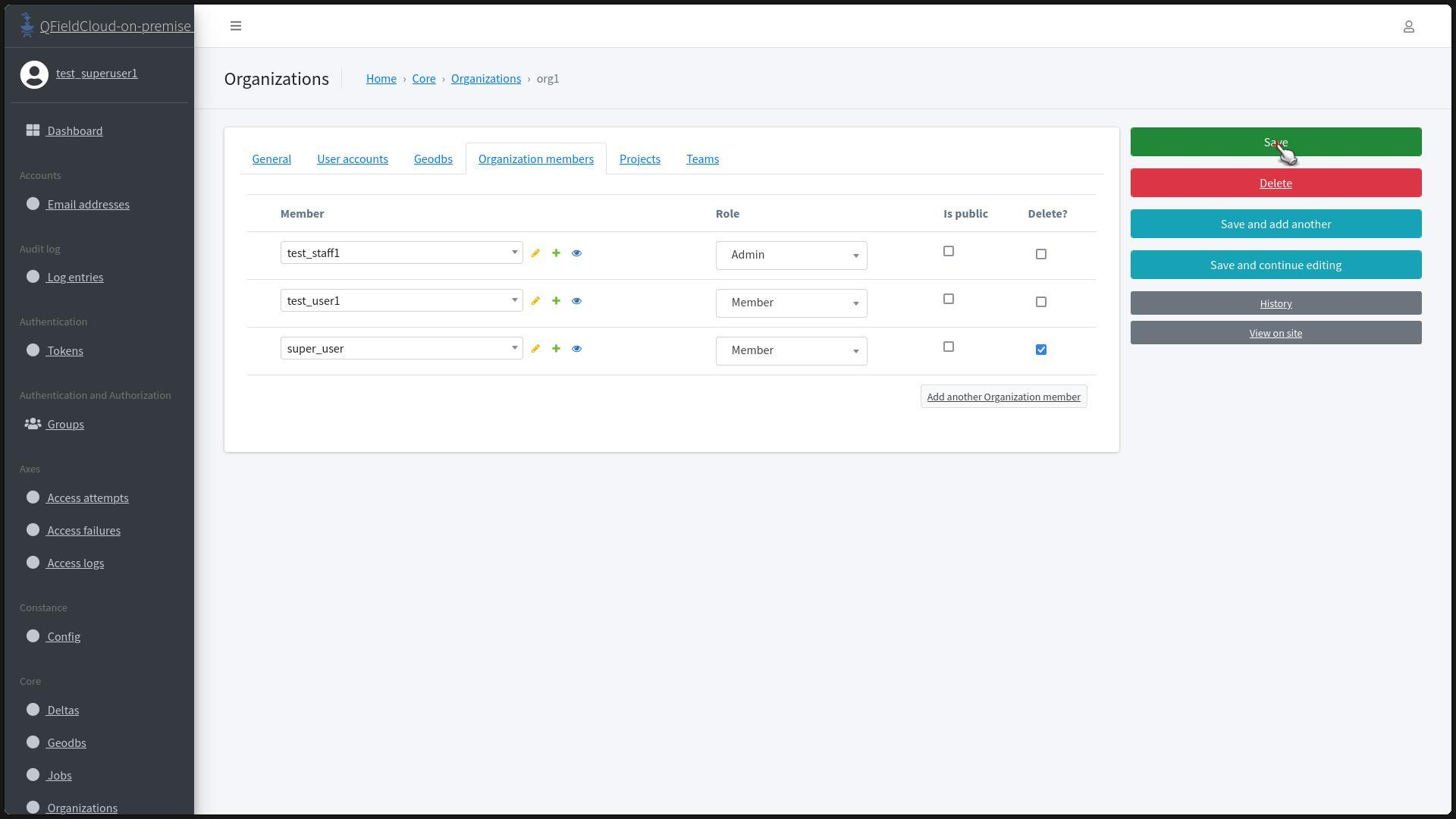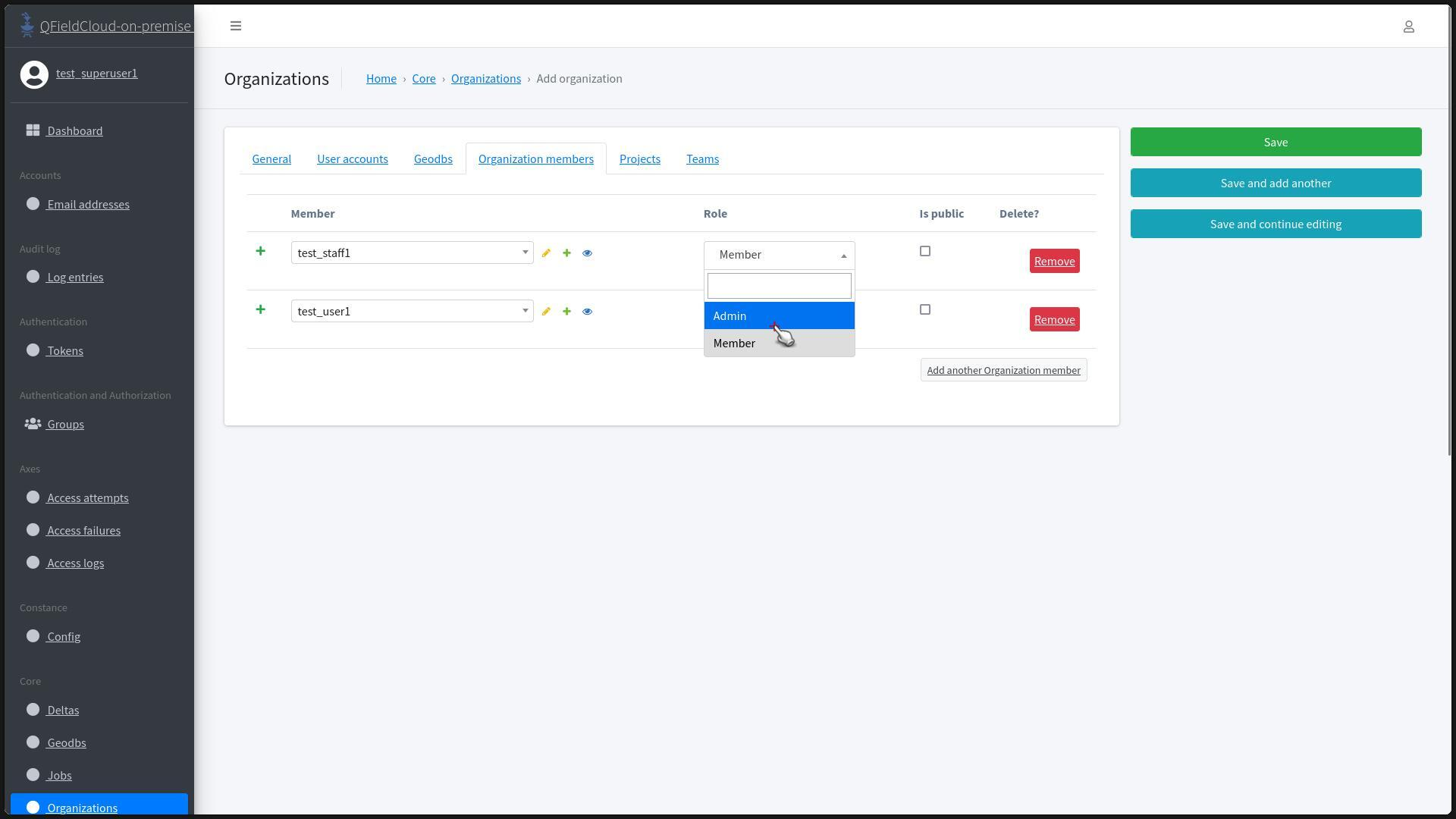 Select the role you want to assign to the user and click to "Save" the updated data for the "Organization".