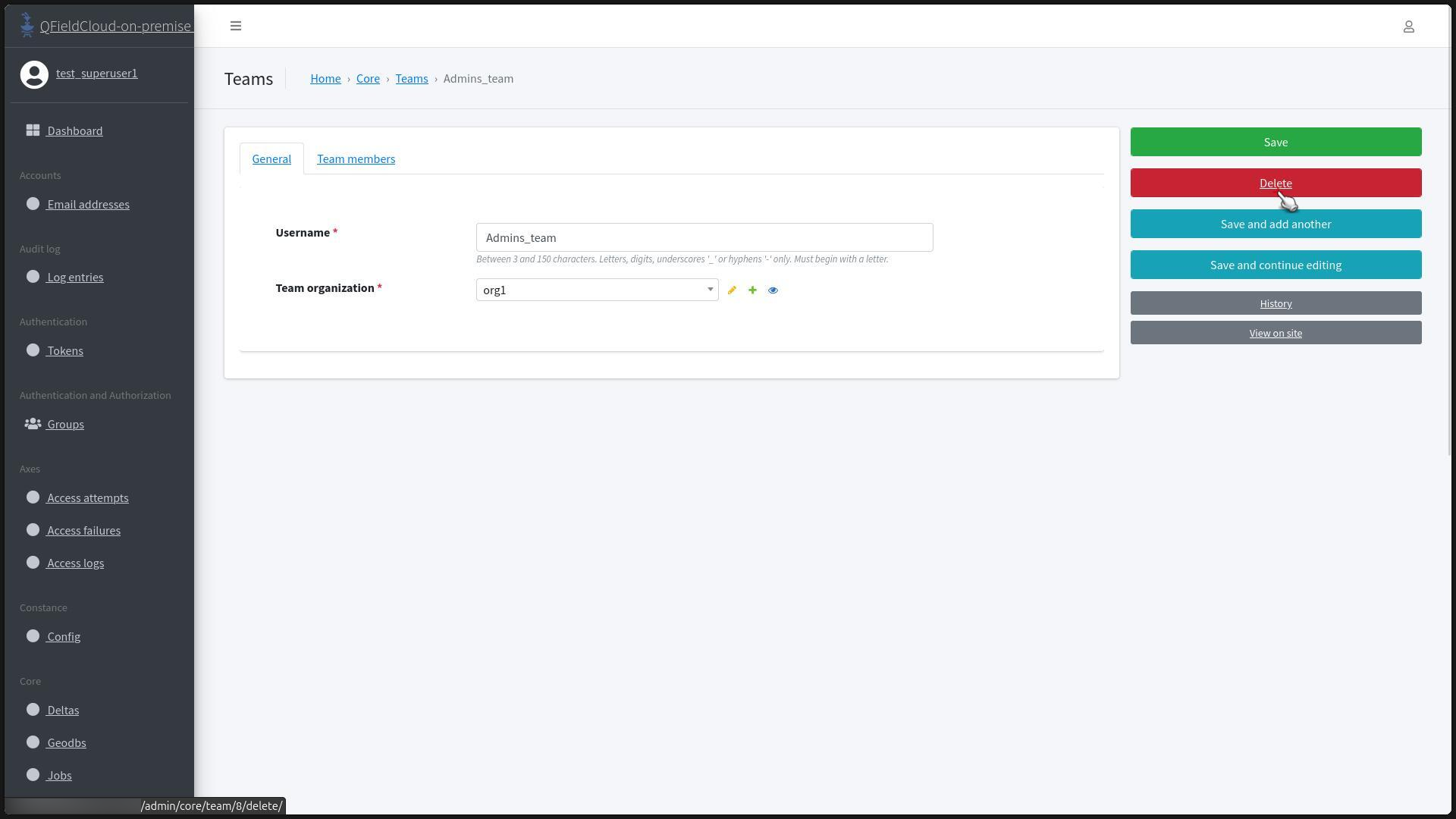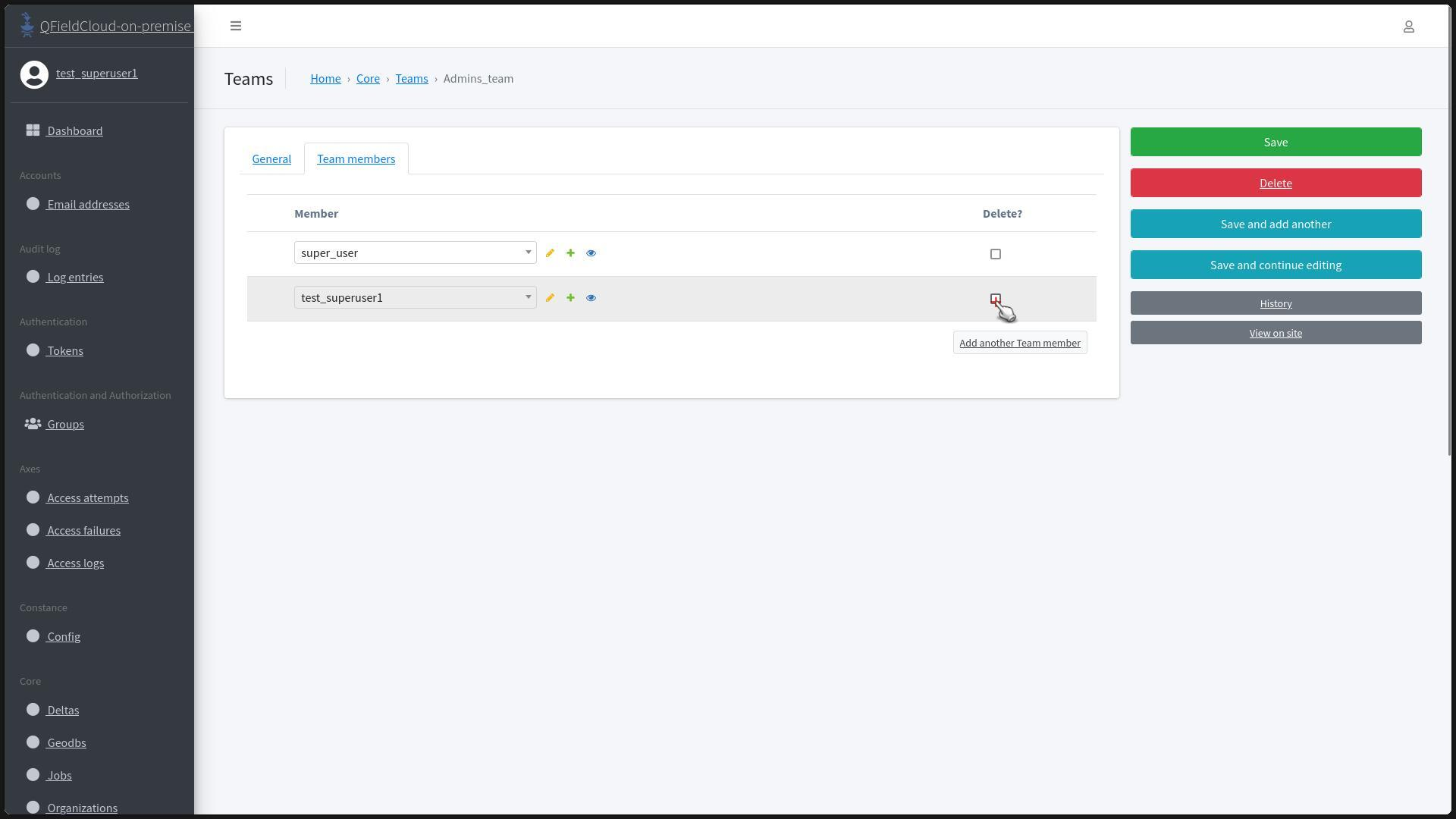 You will be redirected to the "Teams" section and a message should appear at the top of the page indicating the successful deletion of the selected members.