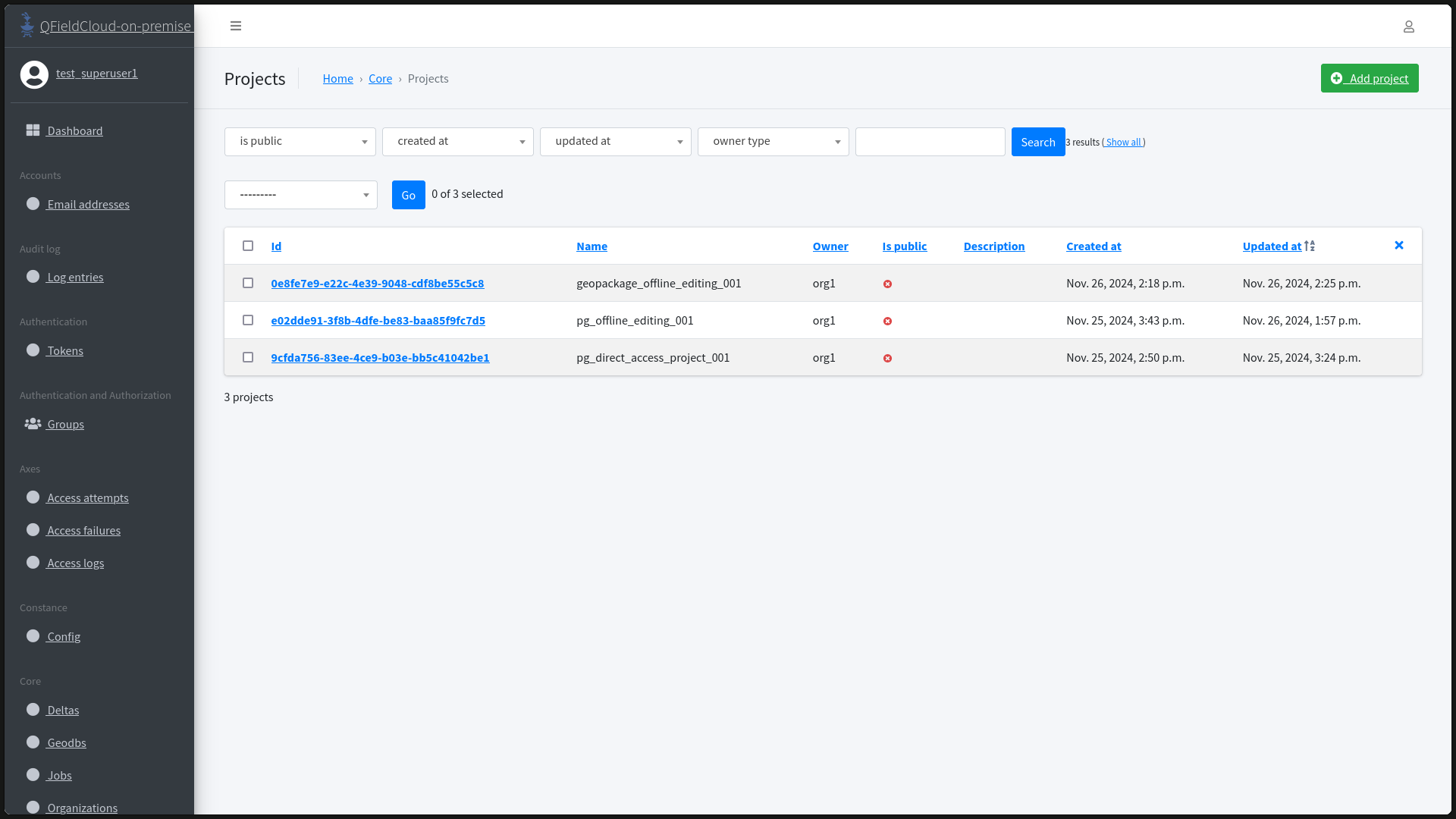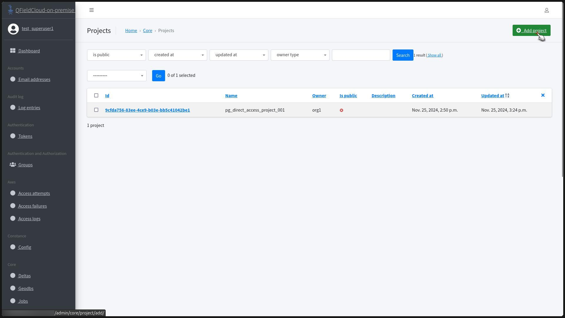 - In the Admin view, navigate to the "Projects" and inspect the project's information.