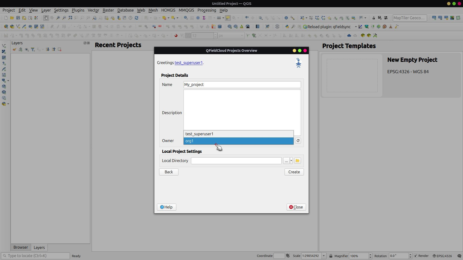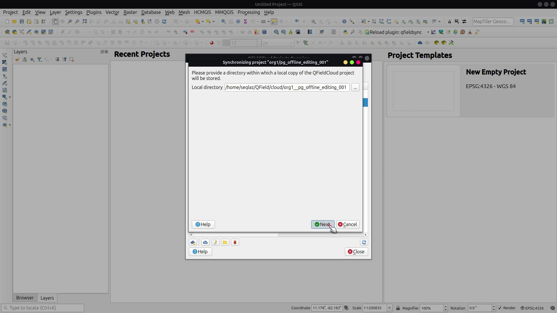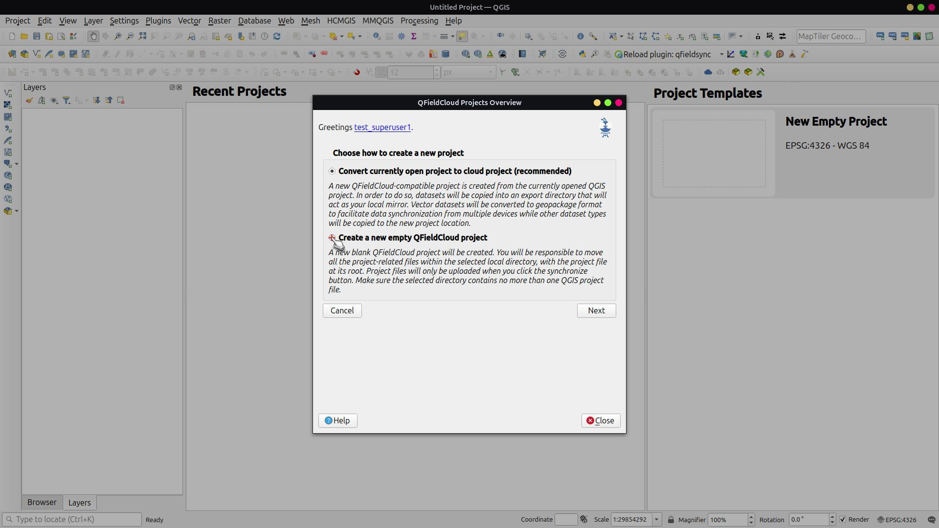 Select "Create a new empty QFieldCloud project" and click "Next".