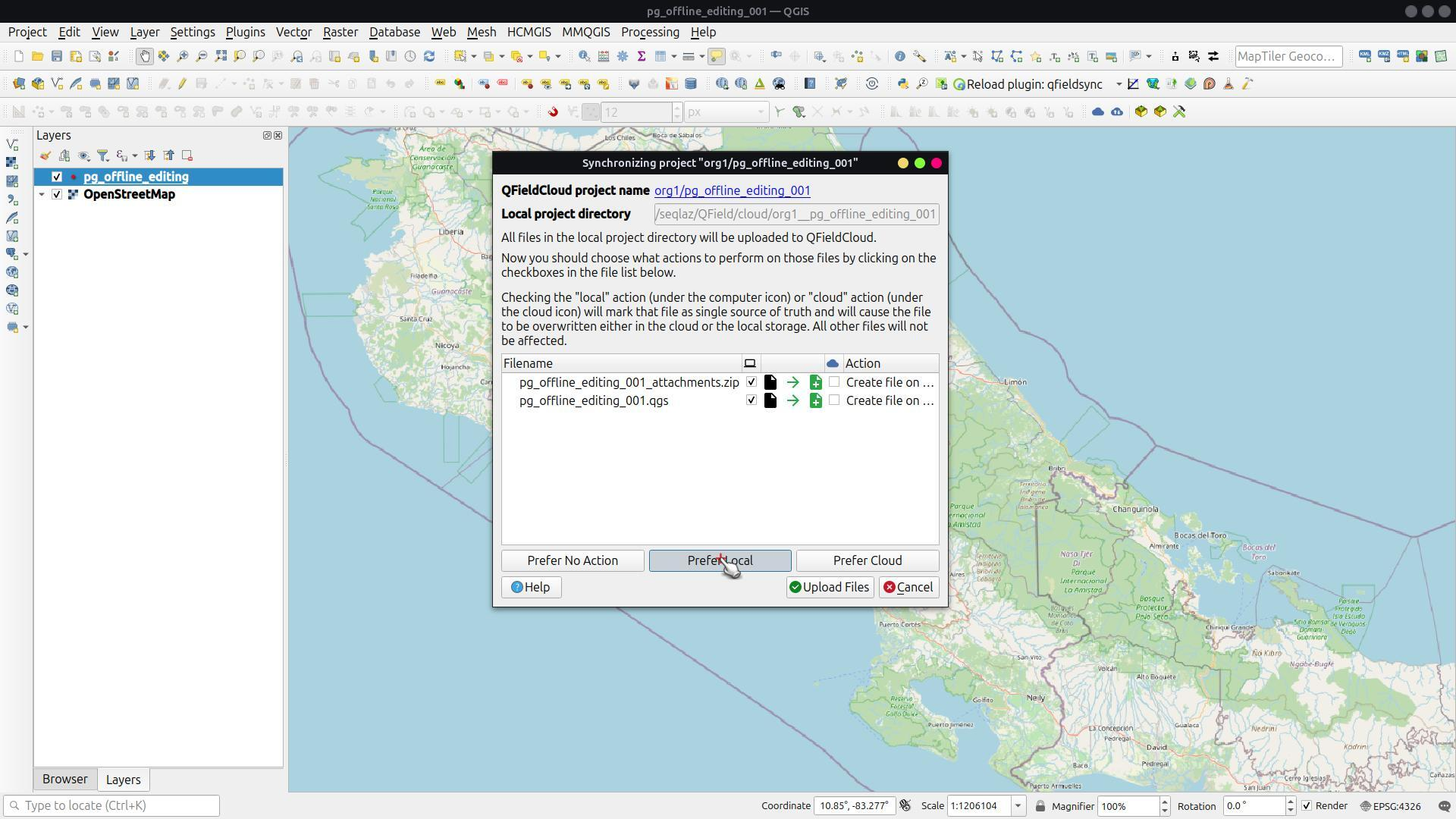 In QGIS and the QFieldSync plugin, synchronize the current cloud project changes.