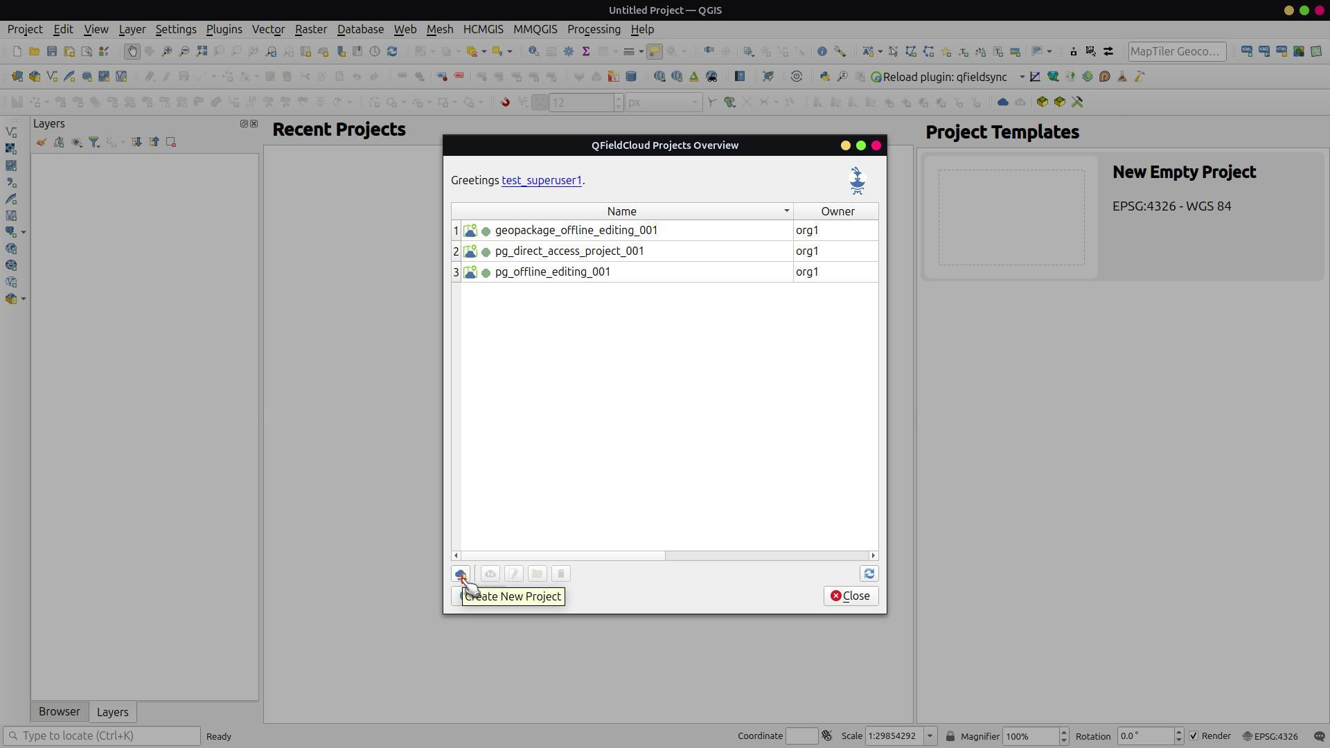 - In QGIS and the QFieldSync plugin, go to the "QFieldCloud Projects Overview."