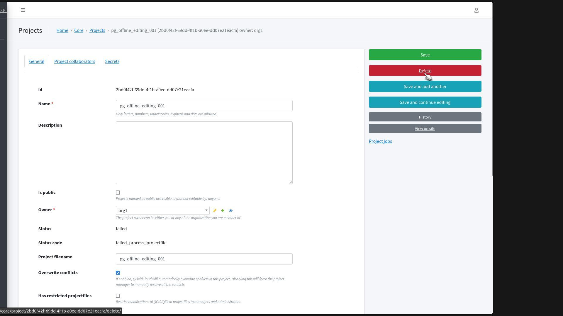 - The project will be listed in the "QFieldCloud Projects Overview".
