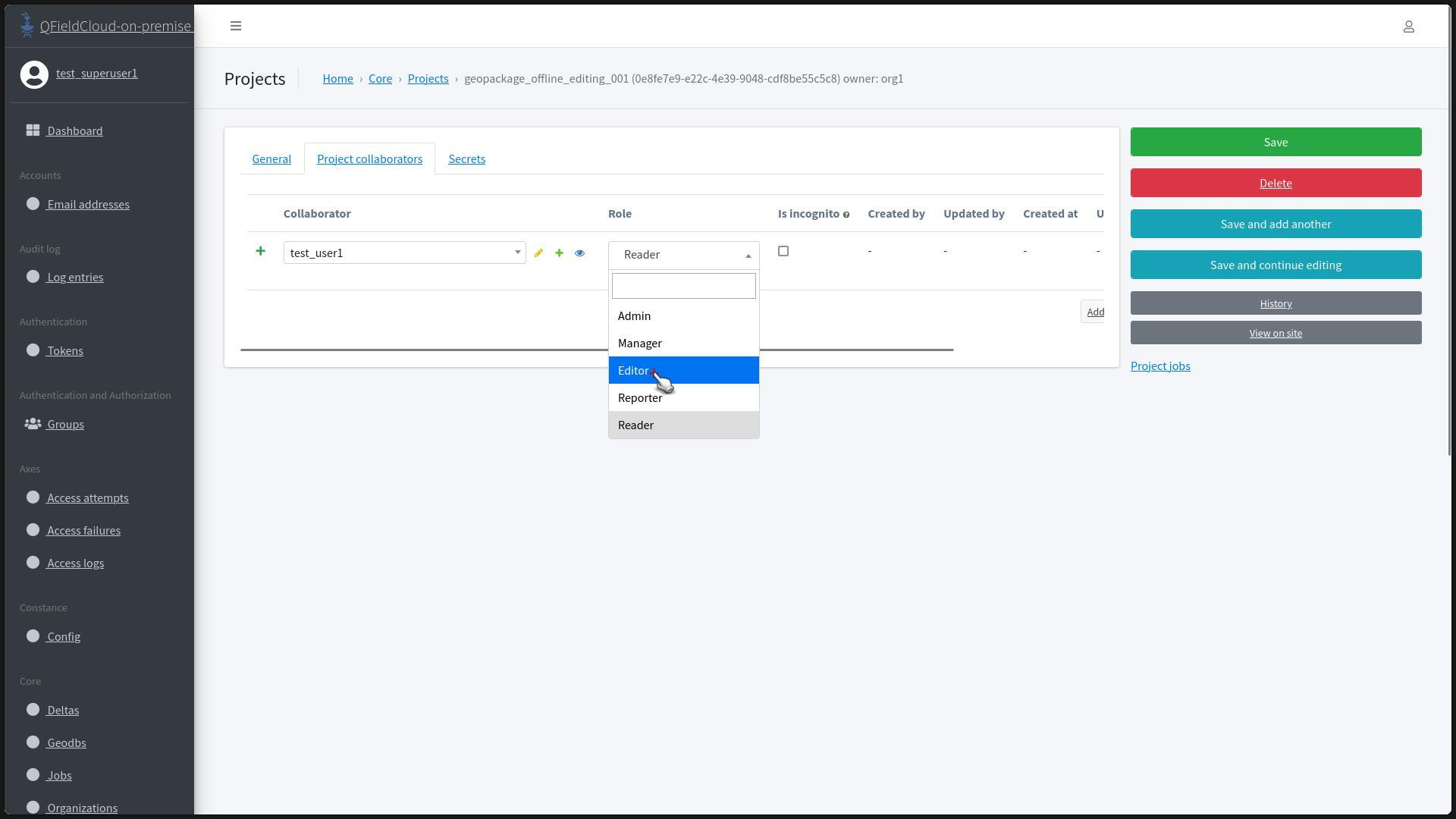Change the roles of collaborators by selecting the desired role from the dropdown.