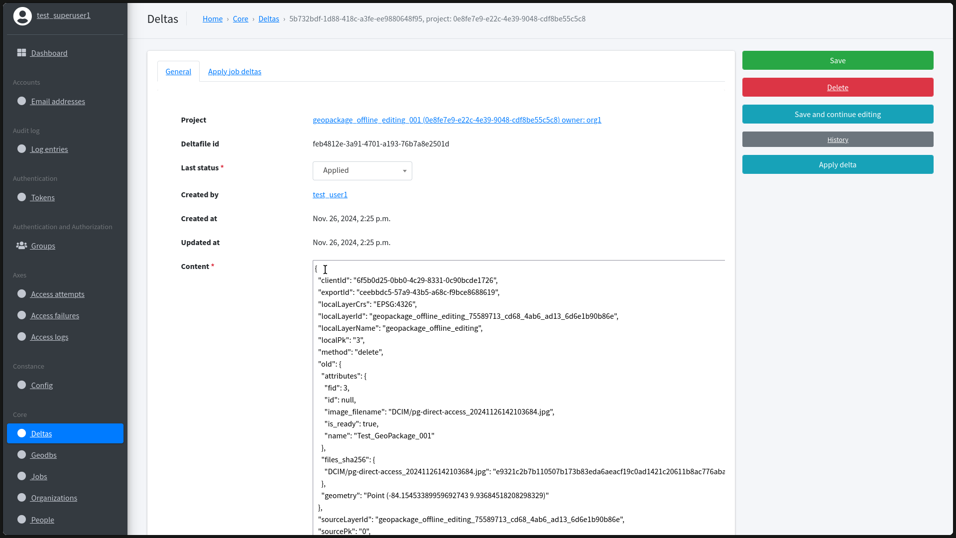 Click on the delta you want to inspect. You will see the content in JSON format, showing the corresponding changes.