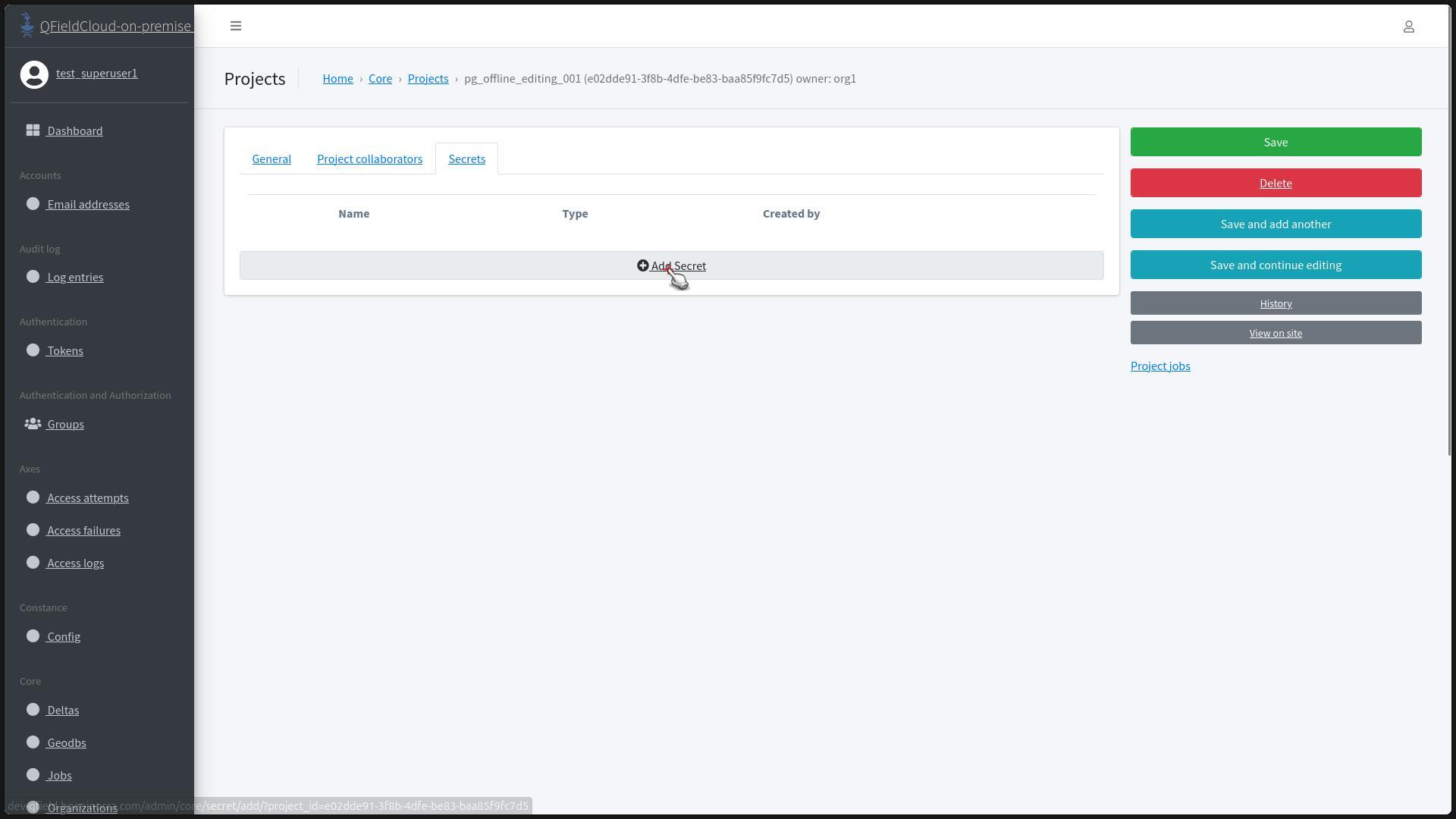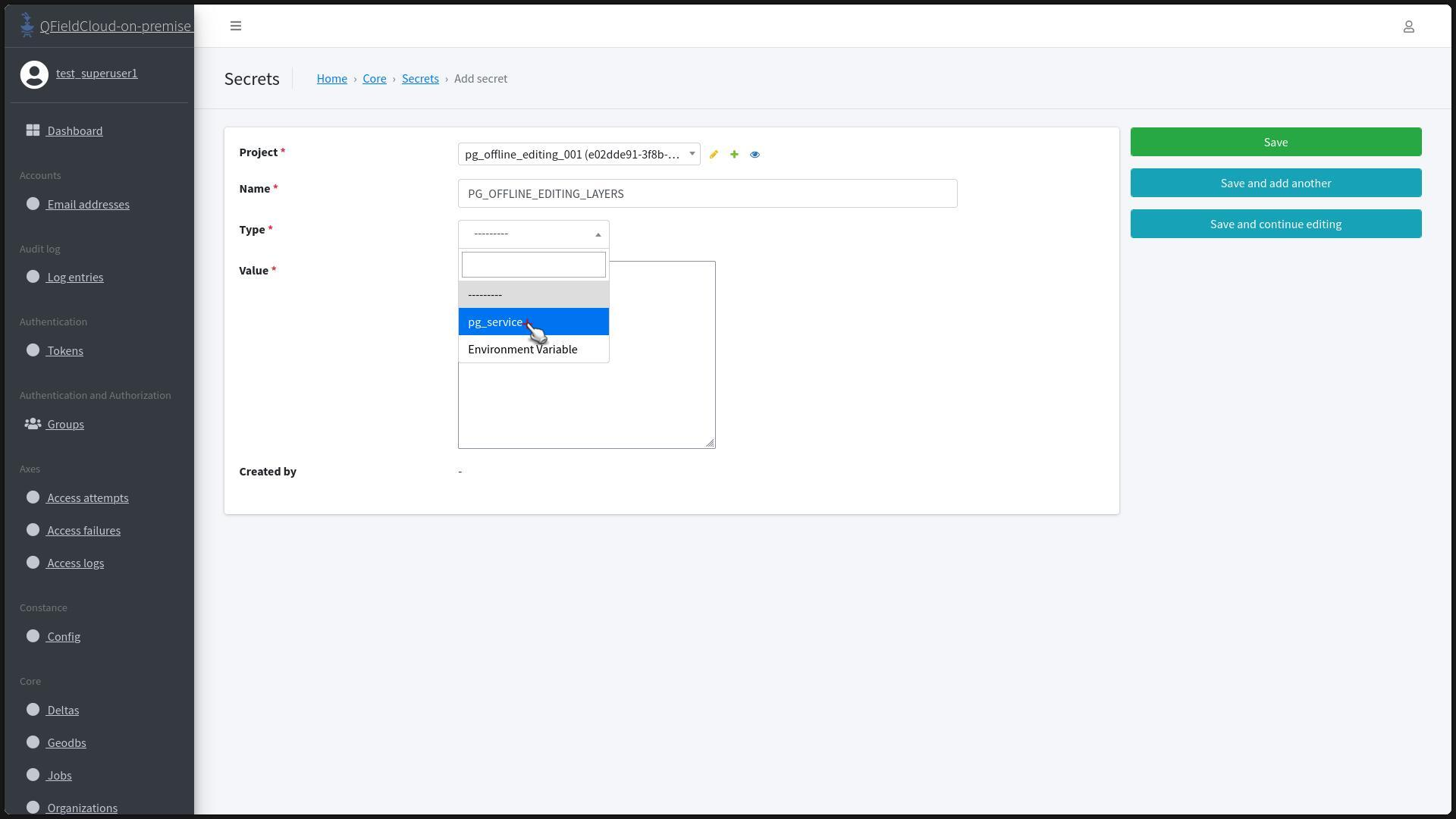 Fill in the "Name" of the secret (this should be in all uppercase). In the "Type" field, choose "pg_service" from the dropdown list.