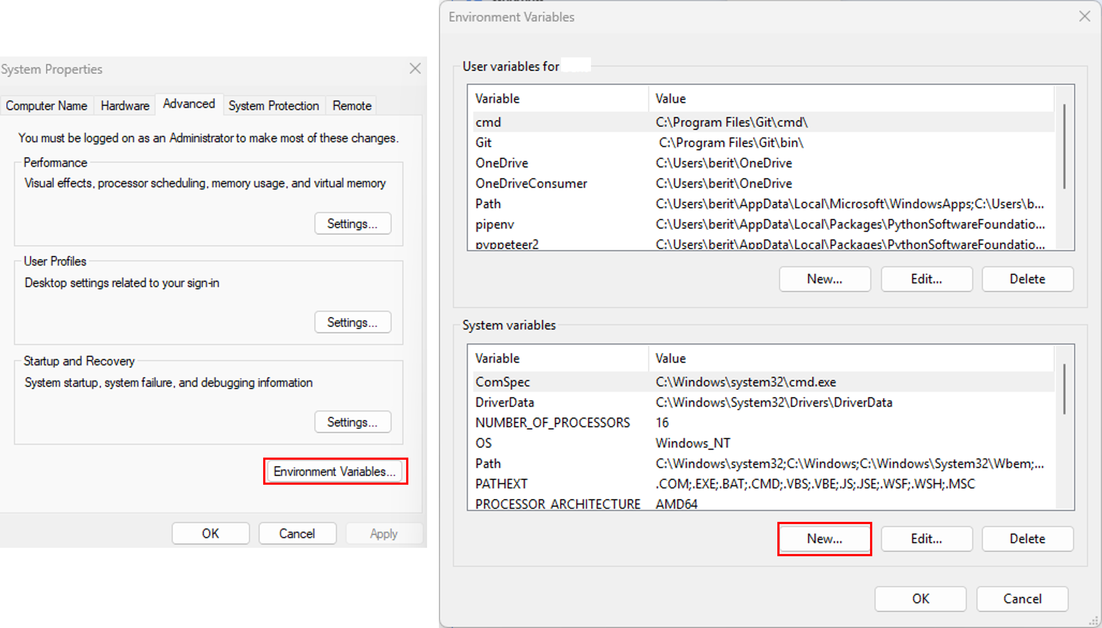 - Navigate to This PC or My Computer > Properties > Advanced System Settings > Environment Variables.