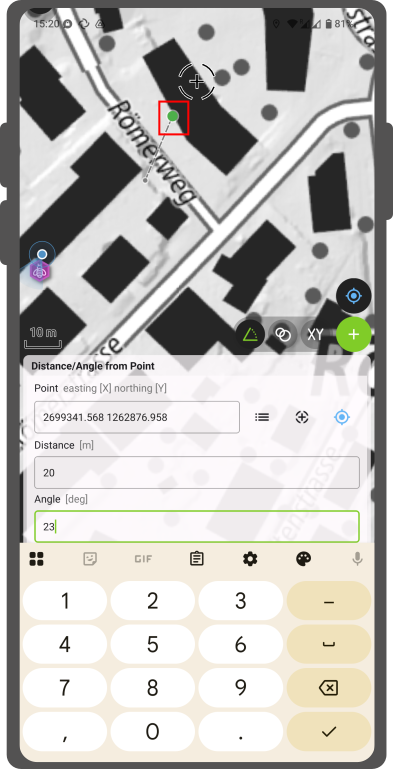 • Make a point at the current location. For this, the positioning has to be turned on.
