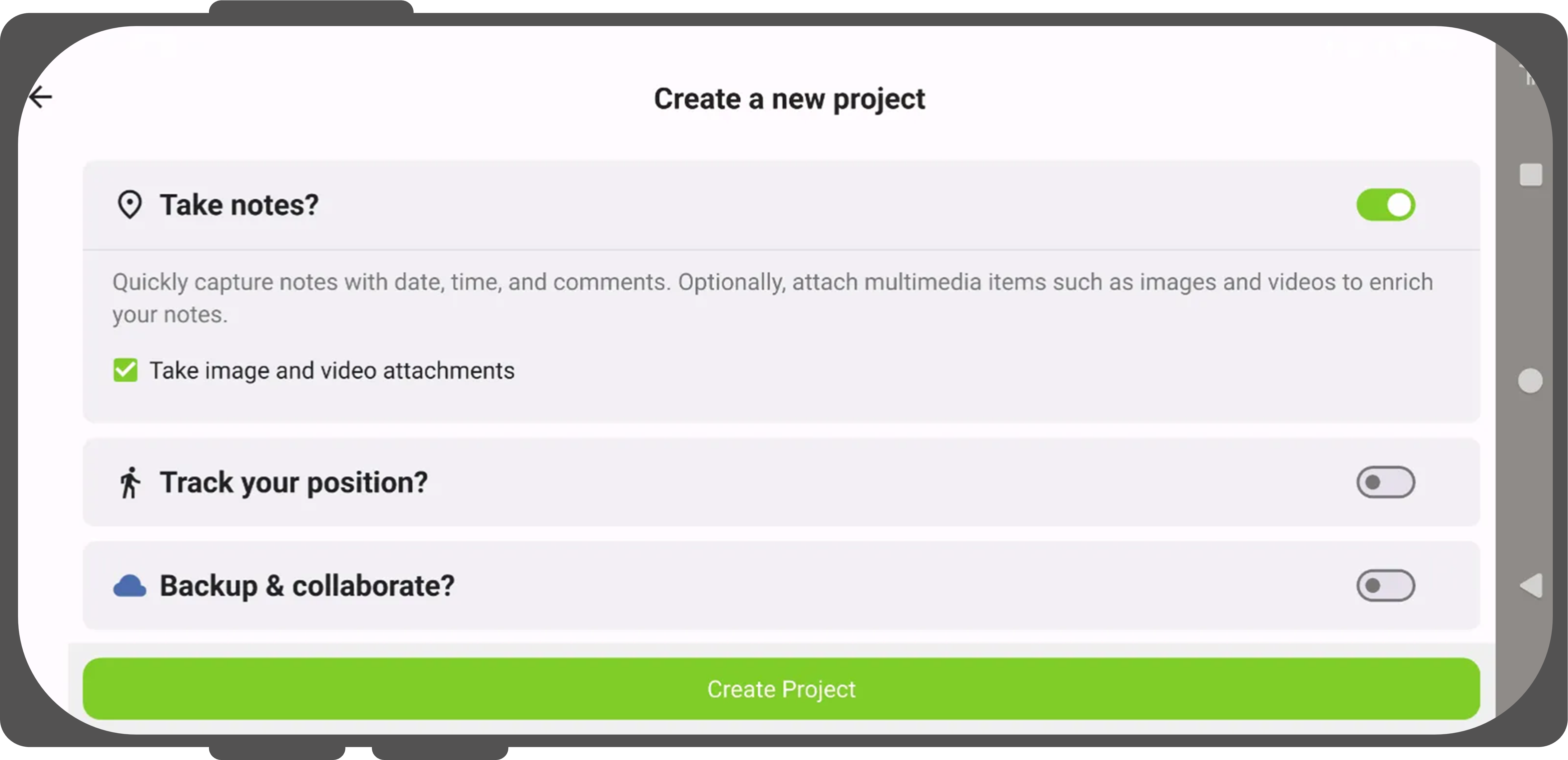 It is possible to create a simple project to collect notes with or without attachments and tracking yourself during the note taking. You can choose between several basemaps and turn it into a cloud project if needed.
